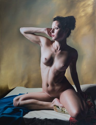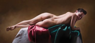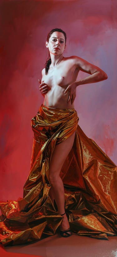 This section of the figure represents the naturalness and freedom of the person, formalized in a nude with classical roots, in both natural and urban environments.