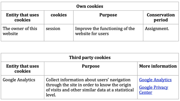 Note: “Own” cookies are used only by the owner of this website and “Third Party” cookies are also used by the service provider detailed in the previous table. You can find out about transfers to third countries that, where applicable, are carried out by the third parties identified in this cookie policy in their corresponding policies (see the links provided in the “More information” section of the table above).